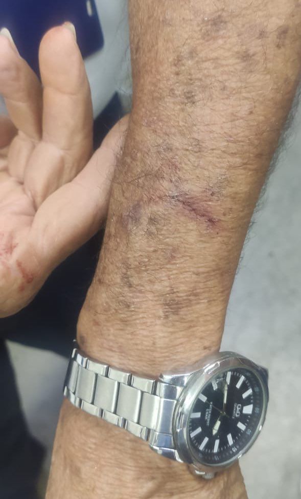 El ataque dejó rotos los vidrios del lado izquierdo del vehículo. El conductor resultó herido en su cabeza y brazo izquierdo, debiendo recibir atención médica.