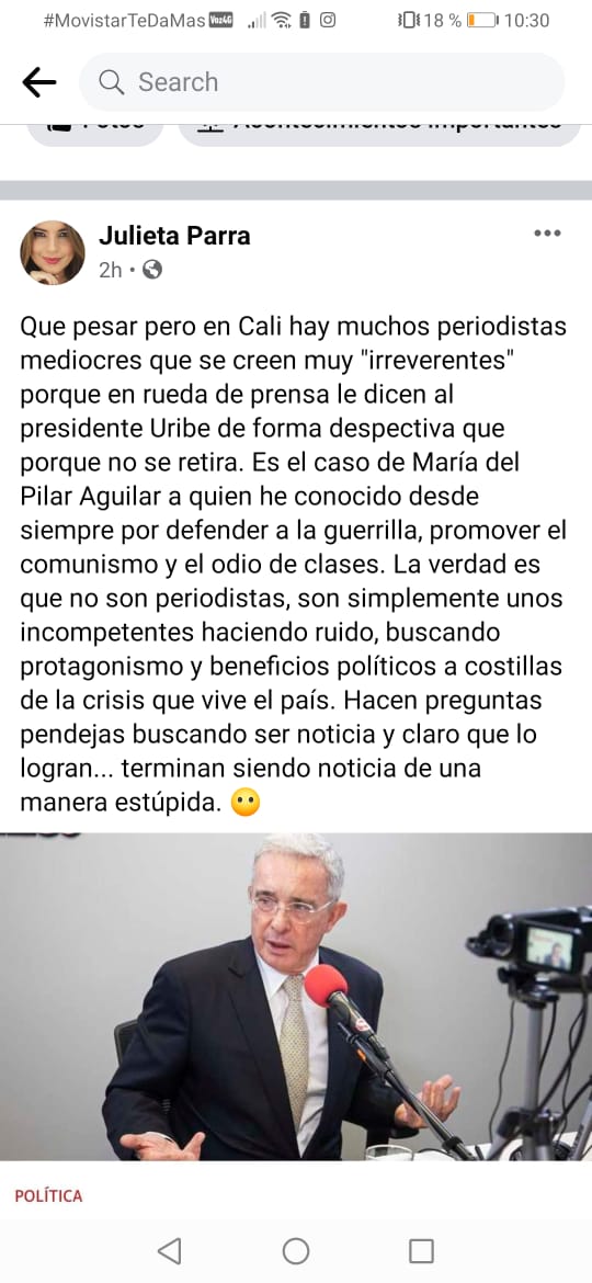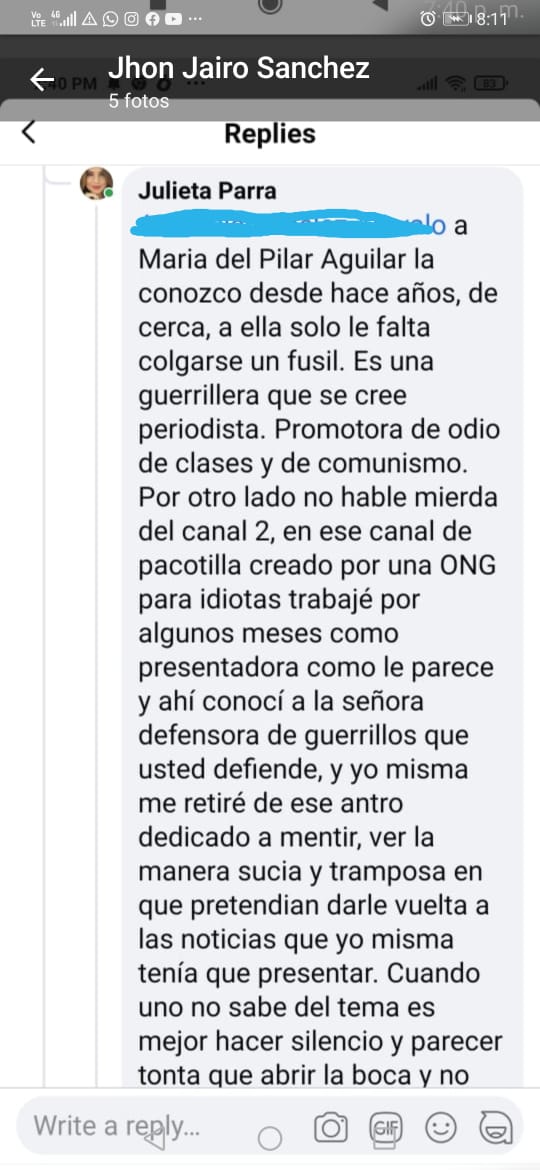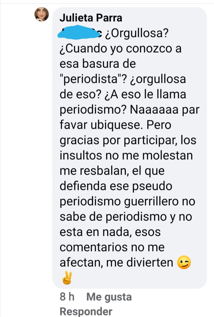 Por esta entrevista, algunos seguidores del expresidente y exsenador graduaron de guerrillera a la directora de este medio , señalándola de » guerrillera disfrazada de periodista, basura,promotora del comunismo y de generar odio de clases»